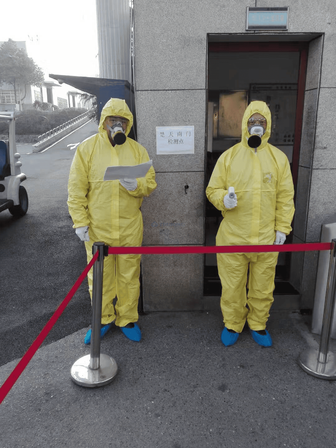 ▲2月5日楚天科技党委谢书记陪同玉潭镇党委书记喻尚、主任袁暑山,检查公司防疫工作。