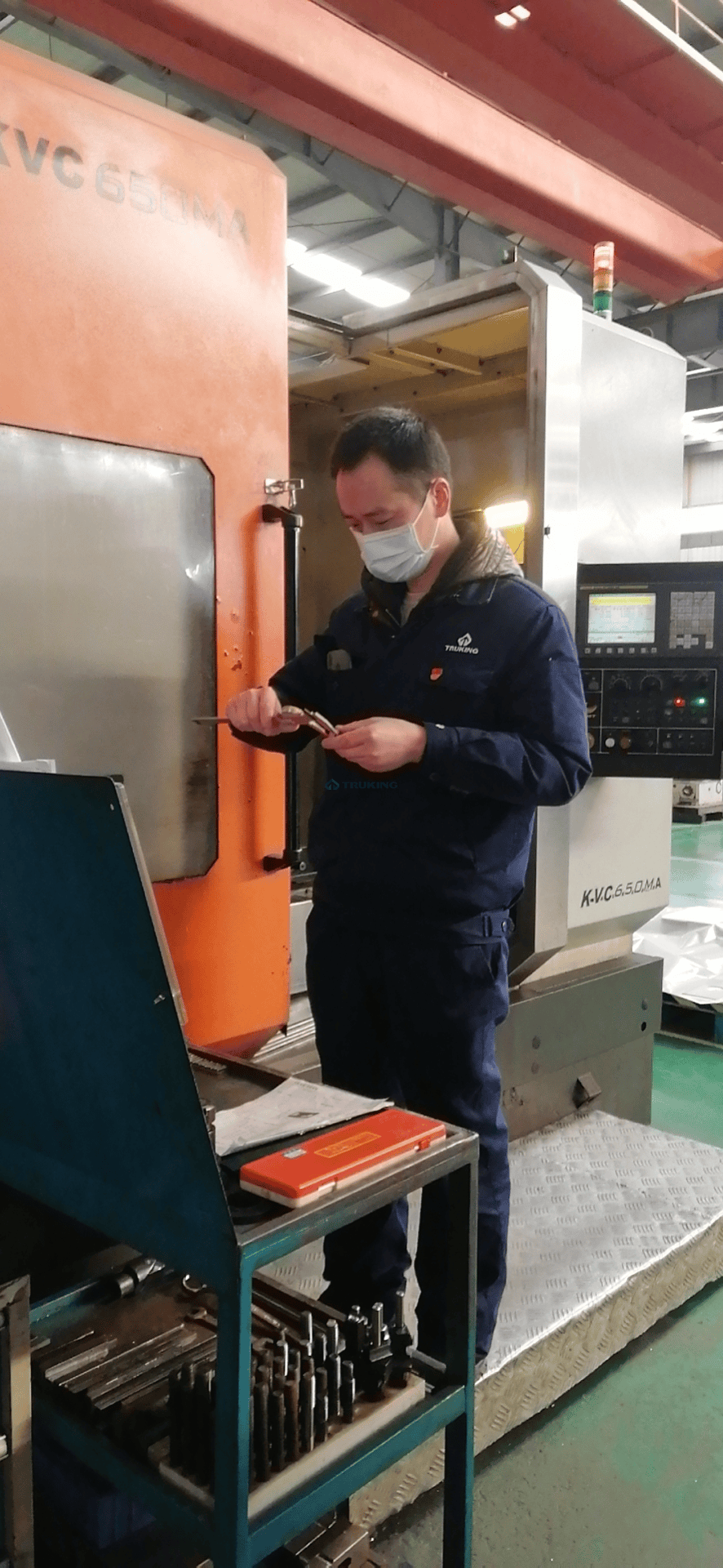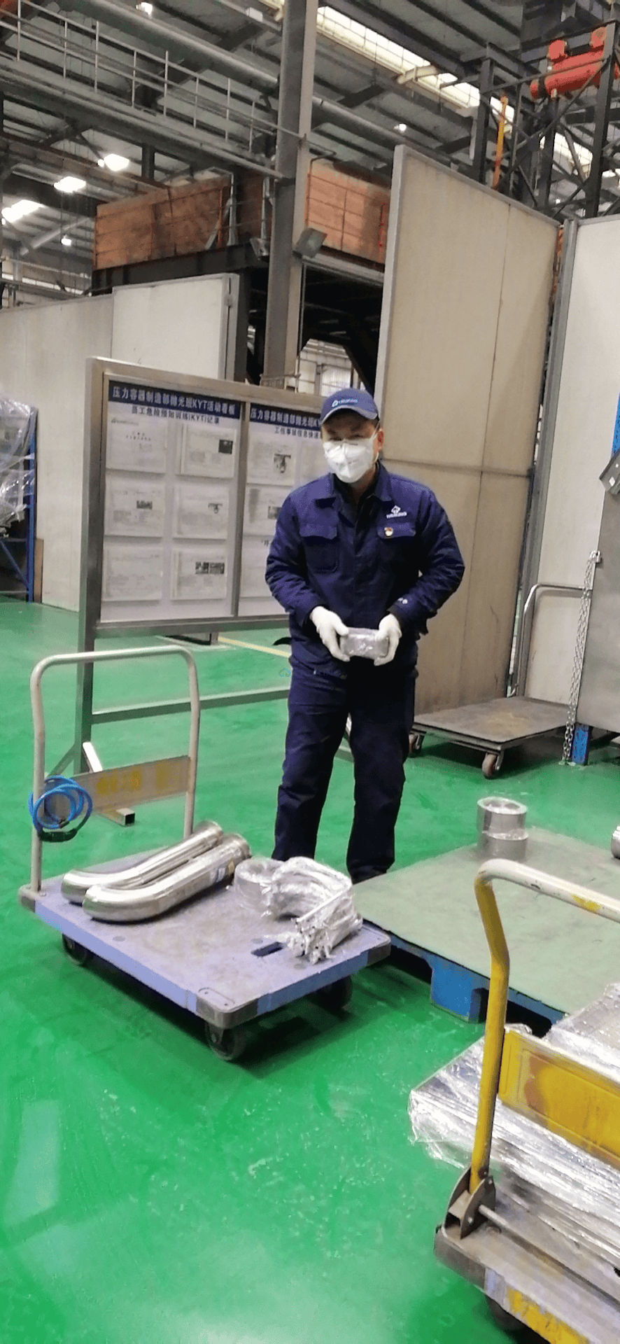 ▲零部长制造部部长唐少锋(左)、班长丁正仲(中)、压力容器制造部班长赵正辉(右)急生产之所急,人手不够、部长、班长来凑,哪里需要哪里去,坚守岗位,确保生产任务的完成
