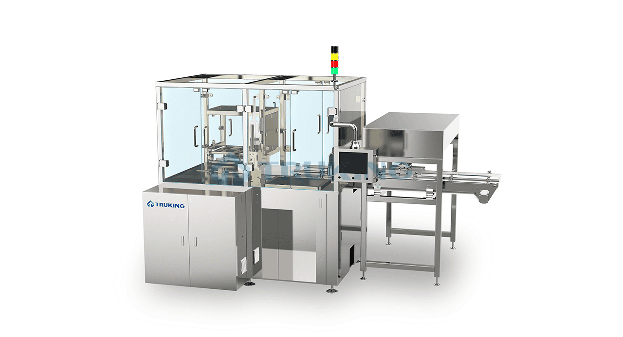 Le système intelligent robotique en synchronization avec le démontage de conditionnement des matières et transport des contenants alimentaires et pharmaceutiques à la machine d’alimentation. Le système remplace l’opération manuelle et prend les capacité d’usine au niveau suivant.