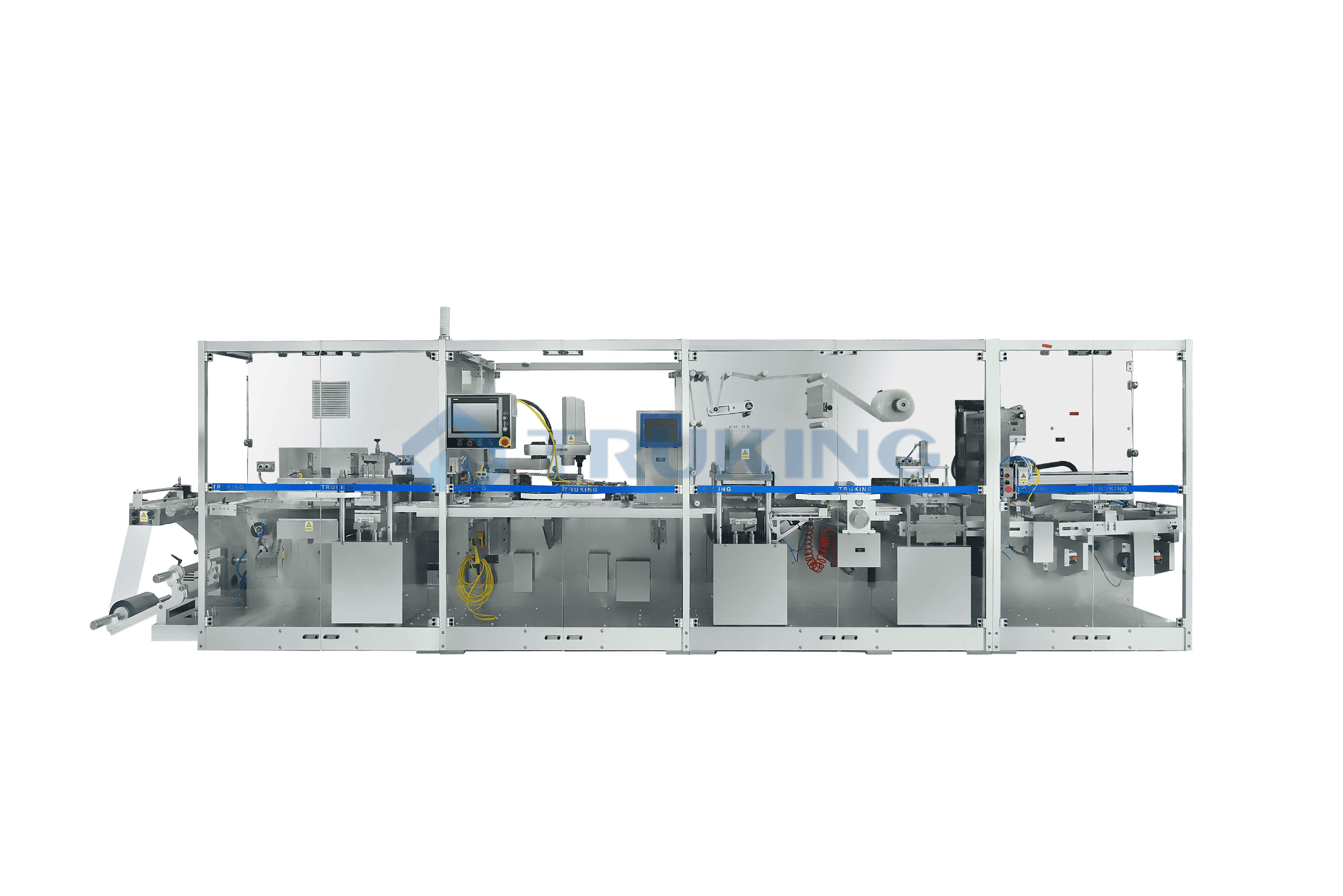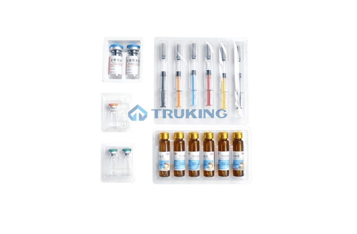 Les séries des machines automatiques des blisters de TRUKING est une unité polyvalente à haute capacité utile à une large gamme de contenants comme les ampoules, flacons, liquides oraux, BFS, carpules etc. avec des alimentateurs automatiques de pointe couplées avec des machines en amont et en aval. Nos machines sont conçues avec une caractéristique unique de passage, haut rendement, déchet minime en matière, et autres.