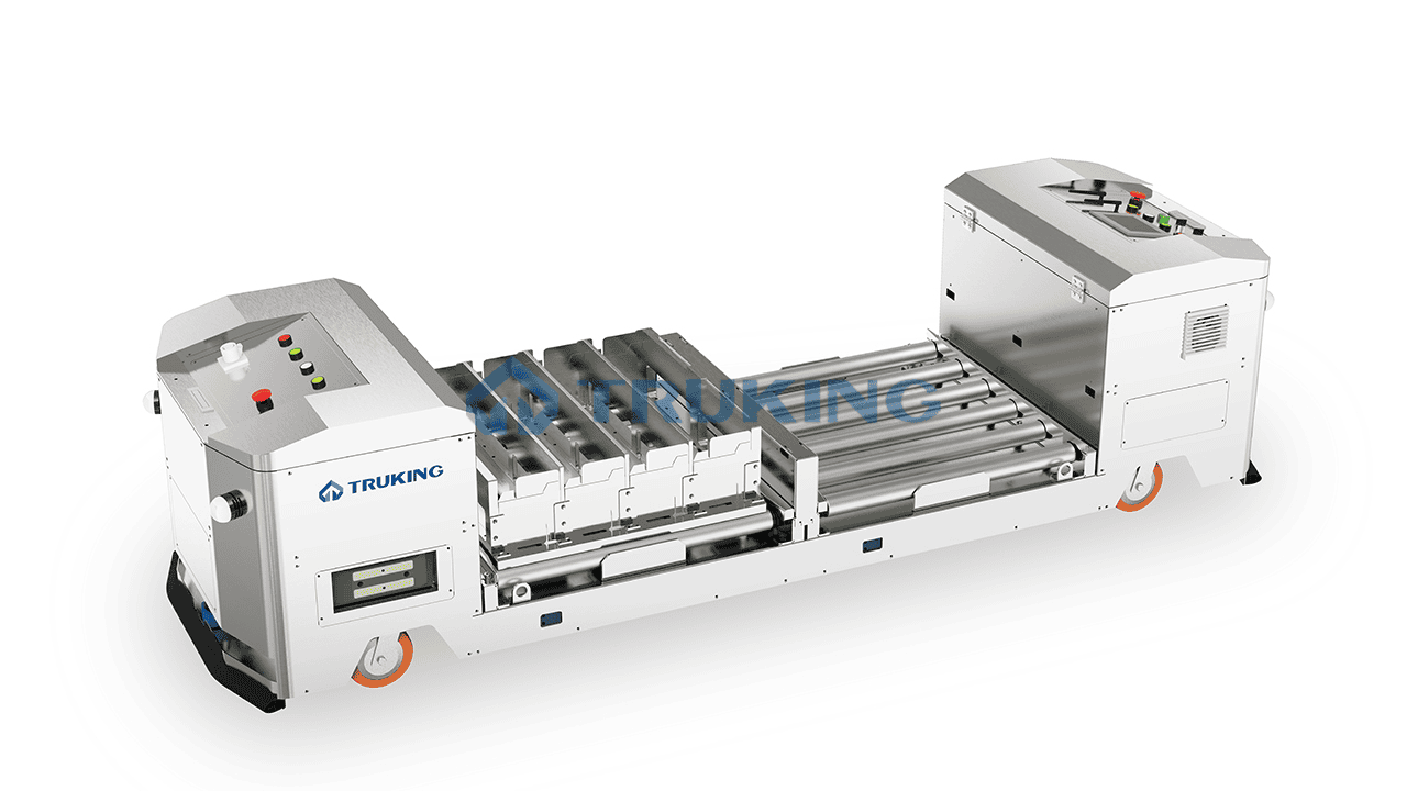 Самоходные транспортировочные тележки TRUKING – это мобильные роботы, предназначенные для эффективного выполнения комплексных задач транспортировки материалов и сырья в условиях асептического фармацевтического производства на уровне автоматизации Индустрия 4.0.Самоходные транспортировочные роботы подходят для использования в классифицированных чистых помещениях и производятся в строгом соответствии с GAMP, cGMP, FDA и пр.
