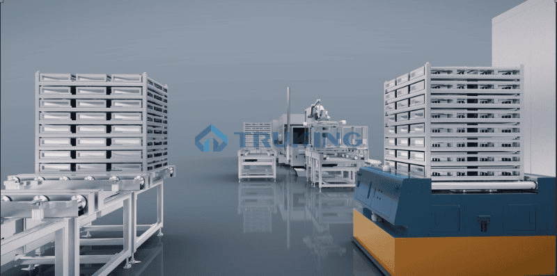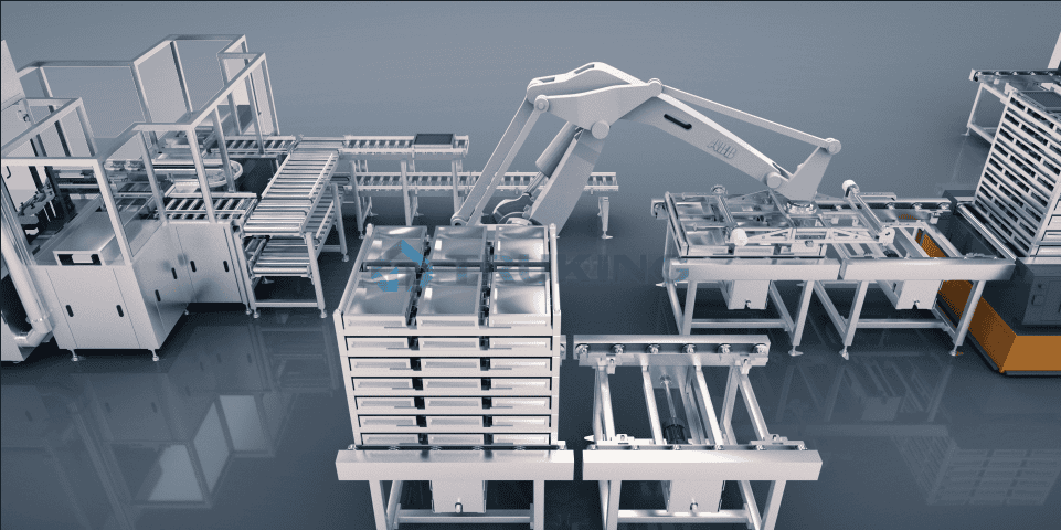 Интеллектуальные логистические системы для внутренней транспортировки TRUKING выполняют большое количество прикладных задач, в числе которых – распаковка сырья, транспортировка, разборка паллет и укладка готовой продукции на паллеты на финальных этапах производства. Система подразумевает полное замещение ручного труда для существенного повышения производительности комплексных упаковочных линий.
